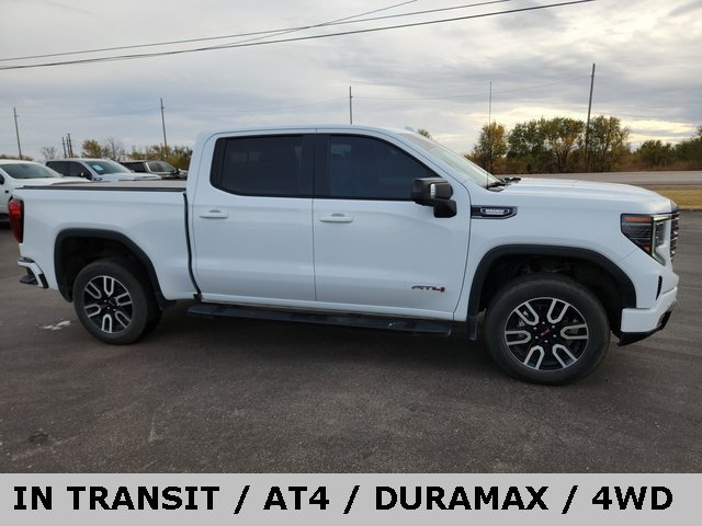 The 2023 GMC Sierra 1500 AT4 with the 3.0L Duramax Diesel engine and 4WD is a premium off-road truck blending heavy-duty trail capability with daily comfort. It features a 2-inch factory lift, specialized suspension, 495 lb-ft of torque for towing, and advanced digital cabin technology. It is designed for maximum versatility in rugged terrain without sacrificing efficiency.